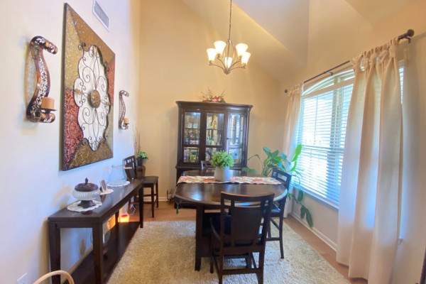 Dining room with skylight for added brightness