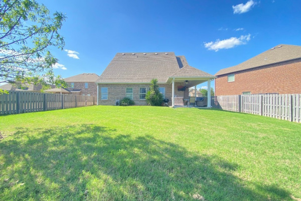 Outdoor covered patio and private backyard for relaxing or entertaining
