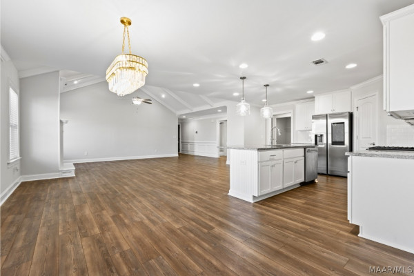 Your dream home is ready now—no construction wait, no compromises. Welcome to McClain Landing, one of Prattville’s most sought-after neighborhoods, where modern design meets timeless Southern charm. This immaculate all-brick home offers the perfect blend of comfort, luxury, and convenience. The open-concept floor plan showcases vaulted ceilings, rich luxury vinyl plank flooring, and a stunning marble-surround gas fireplace that instantly sets the tone for elevated living.
