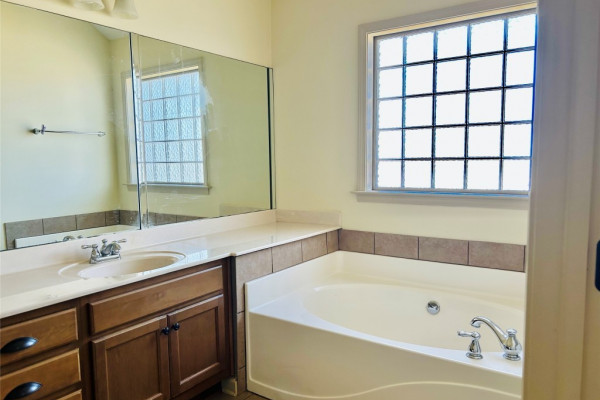 Beautiful waterfront 4 Bedroom 2 bath home in the popular Deer Creek neighborhood of east Montgomery. Open floor plan with 10′ ceilings throughout, fantastic areas for entertainment inside and out, Covered and uncovered patios overlook the beautiful back yard and lake, and they are surrounded by a full fence with lake access. Foyer entry leads to formal dining room with arched cut-through looking onto the great room which features a gas fireplace and new wood flooring which extends throughout the master bedroom. The gourmet kitchen with breakfast area features granite counters, tiled back splash, tons of cabinets, a breakfast bar, stainless appliances, and separate pantry. Separate laundry room leading to the 2 car garage. Master suite includes a large bedroom and bath with a double split vanity, garden tub, separate shower, and walk-in closet. Covered patio overlooking the water. Located on a quiet CUL-DE-SAC in Deer Creek with access to top-tier AMENITIES: Olympic pool, splash park, tennis courts, fitness center, walking trails, clubhouse, and 24/7 security. Available now! LAWN CARE AND WASHER AND DRYER INCLUDED!