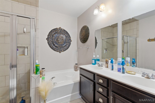 The primary suite offers a peaceful retreat with a spa-inspired bathroom, including a garden tub, separate shower, and double vanity—your own private oasis. Additional bedrooms are generously sized with ample closet space.