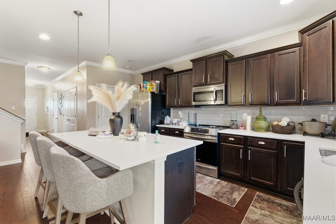 Step inside to an open, airy floor plan featuring hardwood flooring throughout the main living areas and plush carpet in the guest bedrooms for added comfort. The gourmet kitchen is the heart of the home, showcasing granite countertops, stainless-steel appliances, a large center island, and a seamless flow into the living room—perfect for gatherings and everyday living