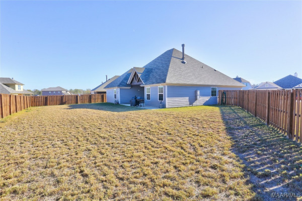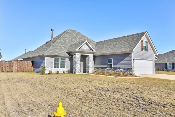 OPEN HOUSE SUNDAY, SEPTEMBER 21, 2:00 to 4:00! Enter into this beautiful, bright and lovely, well-kept, almost brand new home! PIKE ROAD SCHOOLS!! The floor plan is open and welcoming. With this beautiful open floor plan, one can enjoy visiting with family and friends while in you are in the kitchen preparing meals at the large, beautiful granite island! Your guests will find comfort in the lovely, sizeable den which has a charming and warm fireplace! There is a sweet breakfast nook and nice, sizeable pantry. The kitchen contains all stainless appliances! Between the kitchen and den is a large granite breakfast bar…great for entertaining! The main bedroom is large and cozy and the main bathroom has a large and deep relaxing bath tub as well as a separate sizeable shower, double vanity and a large walk-in closet. There are 3 bedrooms on the other side of the house and qreat bonus room upstairs…many possibiities! The back covered porch is unique in the design of the roofing above it and a great place for relaxing and enjoying the nice, fully fenced back yard! All this in the much desired Pike Road area and just minutes from shopping, etc.!