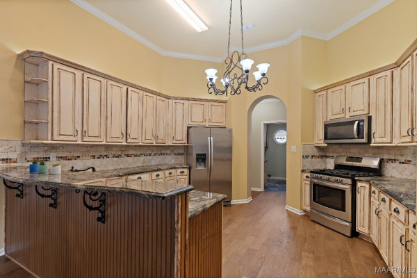 From the moment you pull up, you’ll love the curb appeal — the stately brick, the beautiful entry, and the way this home welcomes you in. Step inside to soaring ceilings, custom wood floors, a grand formal dining room, and a living room filled with natural light and a cozy fireplace.The kitchen is designed for gathering! Granite countertops, an oversized gas stove, bar seating, and an eat-in dining area that overlooks the backyard retreat. And when it’s time to celebrate, you’ve got that formal dining room ready for holidays and dinner parties.
