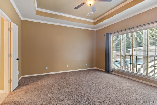 The primary suite is a getaway all on its own — trey ceilings, a huge walk-in closet, and a spa-like bath with double vanities, jetted tub with TV above, and a walk-in shower. You even have private access to the massive deck — imagine morning coffee, or winding down in the evening while overlooking your own PRIVATE OASIS! And yes — the bedrooms are spacious, the closets are generous, and there’s tons of storage everywhere (even under the stairs — perfect for a storm room). Plus, the laundry room has a sink and custom cabinets to keep things organized.