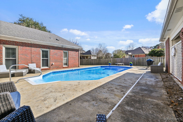 WYNLAKES BEAUTY WITH POOL! Dreaming of an updated and move-in ready home in one of Montgomery’s most desirable gated communities? This stunning 4 bedroom, 2.5 bath beauty sits on a private cul-de-sac on a half acre and features a gorgeous inground pool just in time for warm weather! Step inside to a spacious foyer with formal living room/office and formal dining room. You’ll love the large family room with soaring ceilings, hardwood floors, updated kitchen with stainless appliances, gas range, and a beautiful breakfast room with breathtaking views. The primary suite is very spacious and has direct pool access and luxury bath with large garden tub, separate shower and dual sinks. Entertain with ease from the open living areas to the large patio and pool. Generous parking with large driveway, 2-car carport and large storage room. Plus — golf course community, sidewalks, security, and just minutes to The Shoppes of Eastchase, Vaughn Road, Chantilly Parkway, and Maxwell & Gunter AFB!