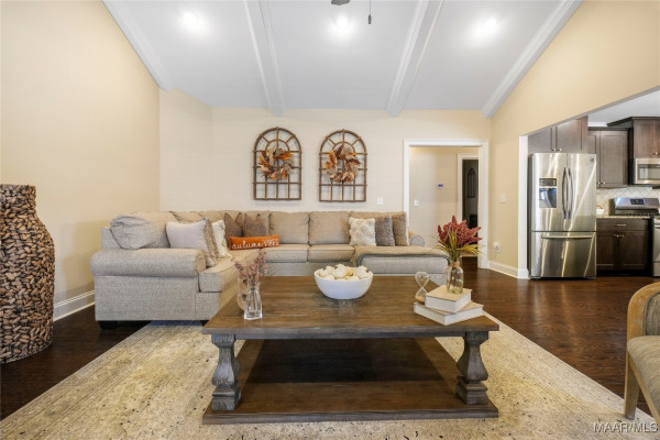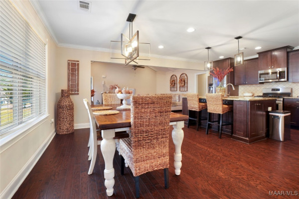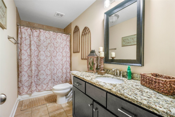 The main level boasts four spacious bedrooms and two full bathrooms. You’re greeted by a beautifully decorated foyer that leads into an open floor plan with wood floors throughout, perfect for entertaining family and friends. The chef’s kitchen features granite countertops, a gas cooktop, stainless steel appliances, and abundance of cabinetry for all your storage needs. Just off the kitchen, you’ll find three generously sized bedrooms with ample closet space, conveniently centered around a full guest bathroom.