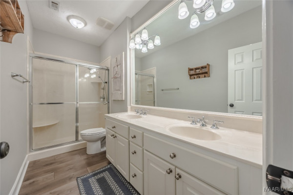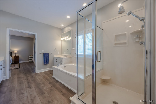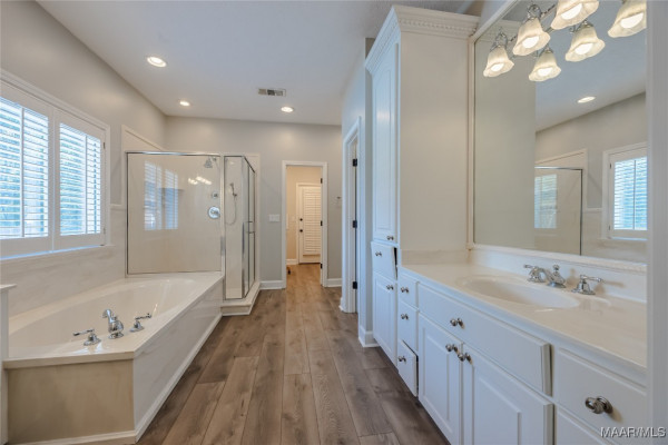 The master suite is spacious and includes an attached office, ideal for working from home or creating a private retreat. The master bath has a jetted tub, a separate tiled shower, split vanities, and 2 walk in closets. All of the other guest bedrooms are generously sized, offering plenty of comfort and flexibility.
