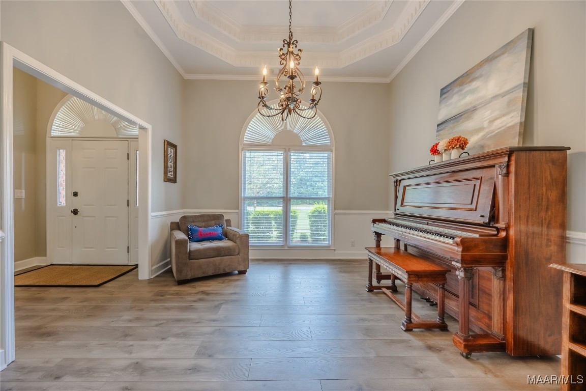 The interior features an oversized living room, tall ceilings, and a gas log fireplace that creates a warm and comfortable atmosphere. A formal dining room and a bonus space, currently used as a piano room, provide extra space for entertaining. The kitchen is designed to impress with quartz countertops, a stylish backsplash, a double oven, a pantry, and ample cabinet space. A sunroom overlooks the backyard and saltwater pool, making it the perfect spot to relax and enjoy the view.