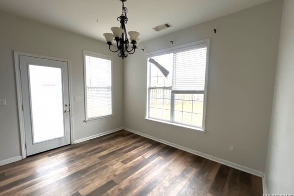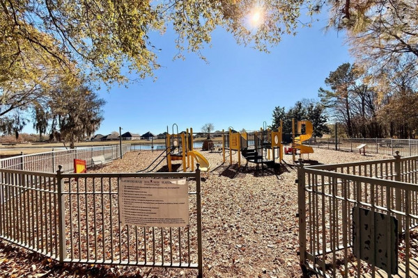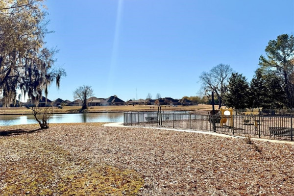 Spacious 4-bedroom, 2-bath Lowder-built home offering over 2,000 sq ft and a desirable open floor plan. The great room features high ceilings, a cozy fireplace, and abundant natural light, flowing into a dining area with columns and a kitchen featuring granite countertops, tile backsplash, breakfast bar, breakfast nook, plus ample cabinetry. The split-bedroom layout provides privacy, with a generously sized primary suite offering a garden tub, separate shower, double vanities, and a walk-in closet. Three additional bedrooms and a full bath are located on the opposite side of the home. Enjoy a fully fenced backyard with a large patio, as well as an oversized 2-car garage with additional storage. Located in Deer Creek, residents enjoy resort-style amenities including a clubhouse, pool, tennis and pickleball courts, basketball area, walking trails, playground, pavilion, private golf course, and beautiful Lake Genesis at the heart of the community. This home offers a great opportunity to update and add value in a highly sought-after neighborhood.