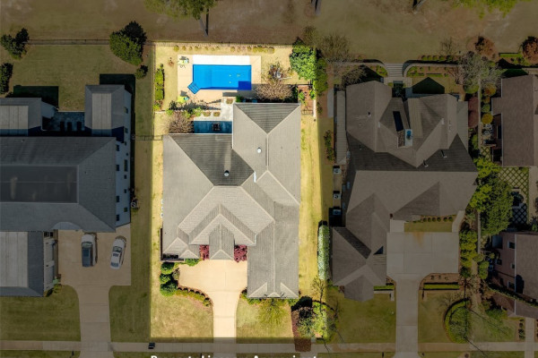 Welcome to this exquisite 4/5-bedroom, 4.5-bathroom home with a New Roof just installed Nov 2025! This home offers a perfect blend of sophistication and comfort. Situated in a prestigious golf course community, this residence boasts a grand entrance, ensuring both privacy and exclusivity. Step inside to soaring ceilings and elegant finishes. The spacious entry of living and dining area offer elegance for that executive home. The study gives that private space for relaxation and productivity. The family room offers a versatile feel in the transition from the kitchen area to outdoor entertaining. Enjoy the warmth of two fireplaces, adding charm and comfort to the living areas. Retreat to the expansive main bedroom suite with a sitting area and spa-like bathroom, complete with a double vanity, a luxurious soaking tub, and a walk-in shower. The gourmet kitchen is a chef’s dream, featuring double ovens, a gas cooktop, a working island, granite countertops, and a delightful breakfast nook. A second bedroom on the first floor includes an en-suite bathroom for guests or a parent suite. Upstairs, 2 bedrooms share a jack n jill bathroom, plus an additional bedroom/flex room with a private bathroom. Enjoy the private balcony off the upstairs common area that provides breathtaking views of the golf course. Outside, entertain effortlessly on the patio with a cozy fire pit and a newly renovated pool. This exceptional property offers both elegance and ease — the perfect setting for creating lasting memories.