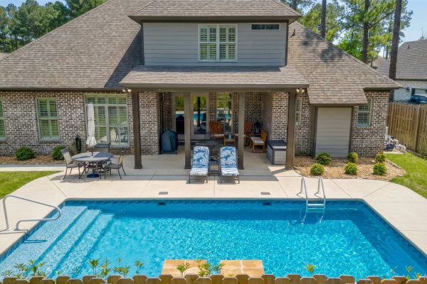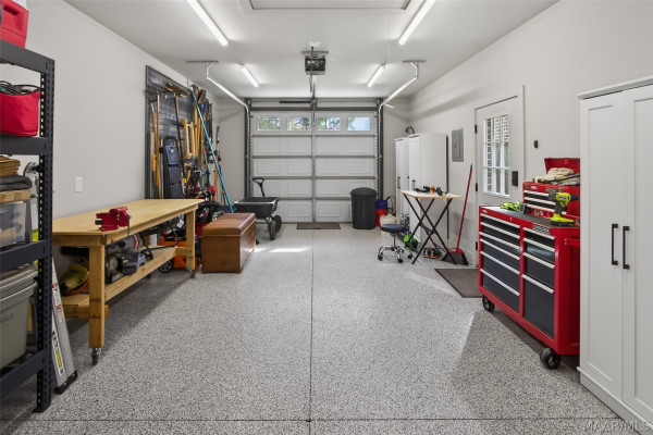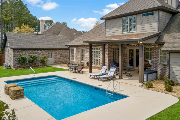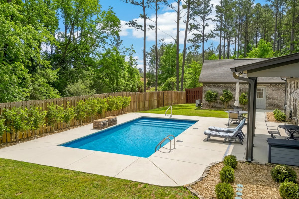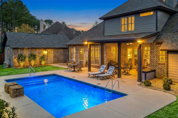 Outdoor living is equally refined with a large covered patio, mature shade trees, lighted landscaping, and a private backyard pool—ideal for entertaining and everyday enjoyment. In addition to the attached two-car garage, the detached garage is heated and cooled, with epoxy flooring in both.