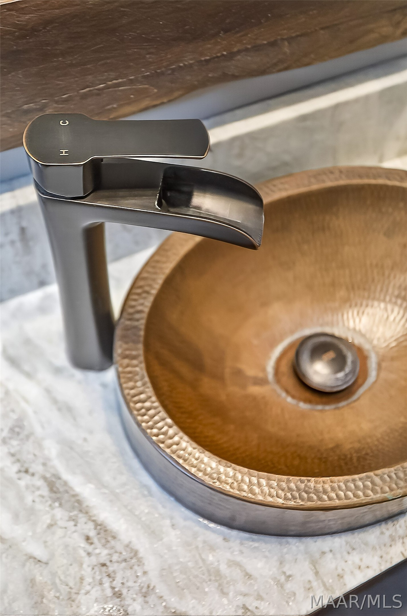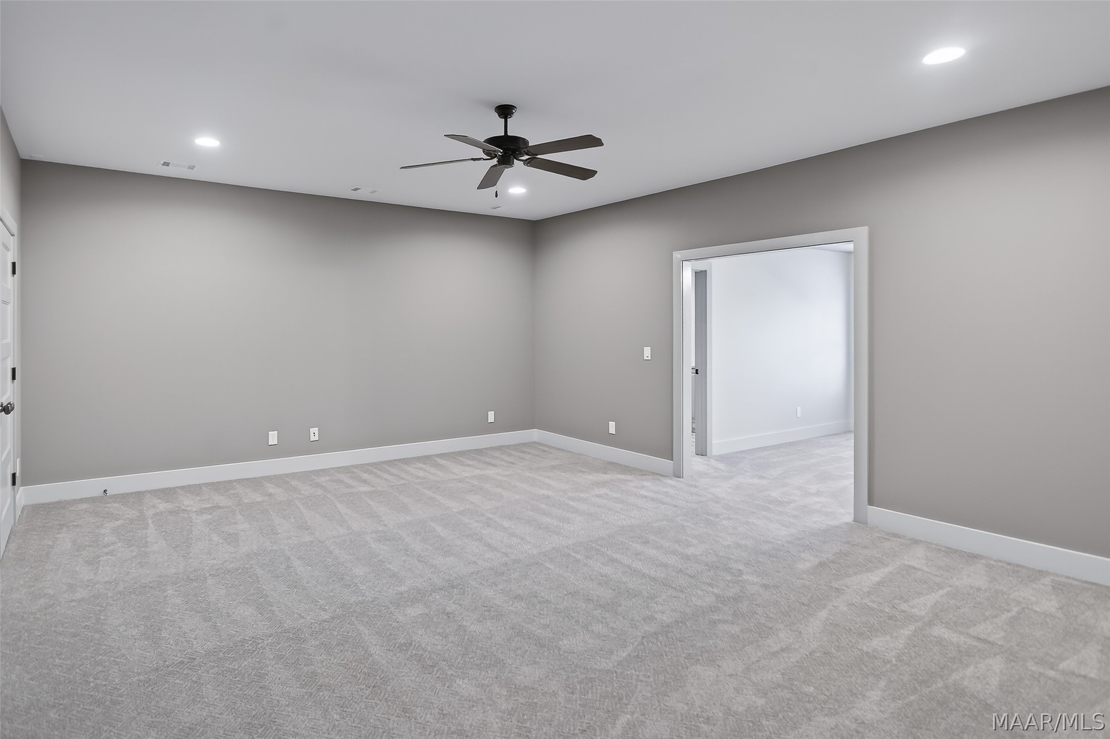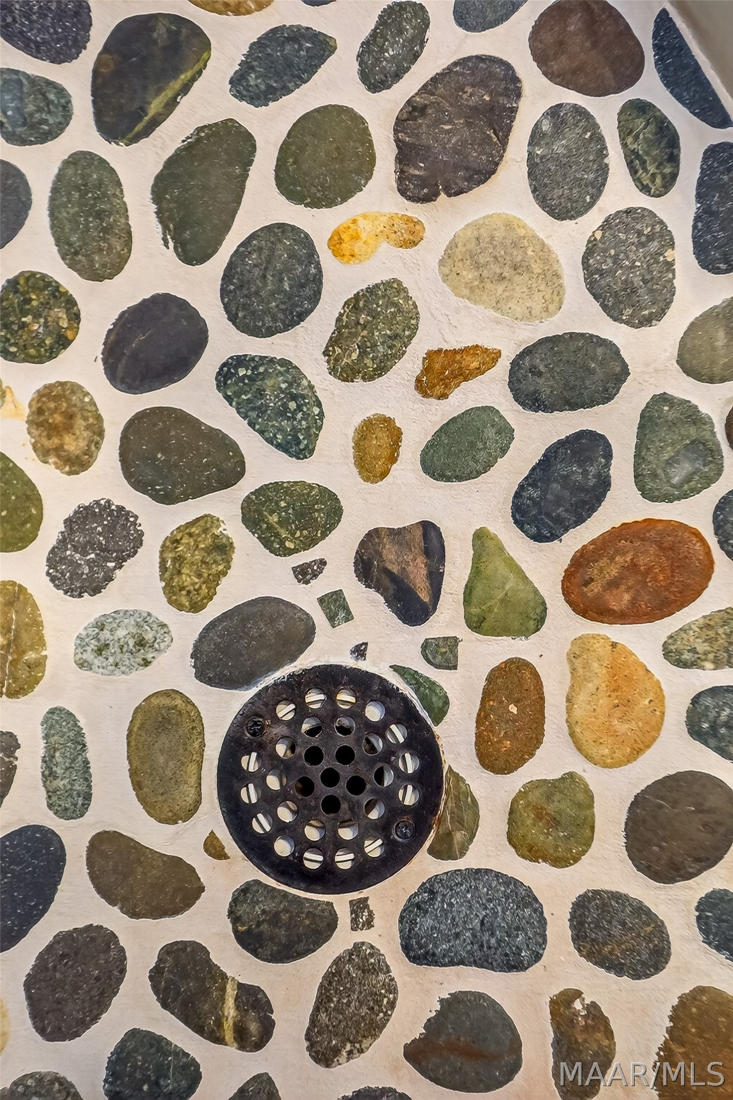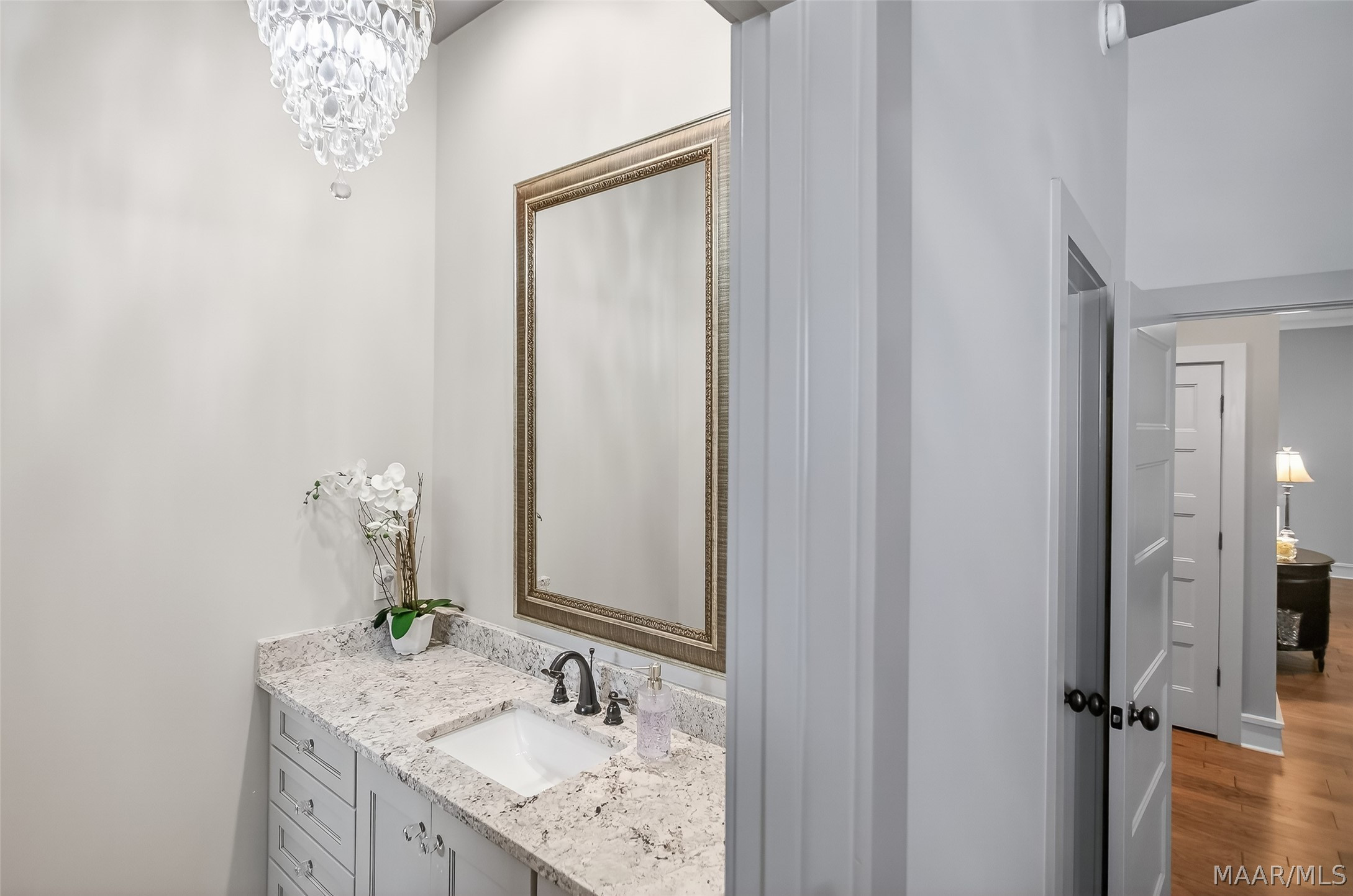 Luxury details include plantation shutters throughout, designer tile selections, upgraded carpet and pad, custom mirrors, statement lighting, and abundant storage, including two walk-in attic spaces, one with built-in shelving.
