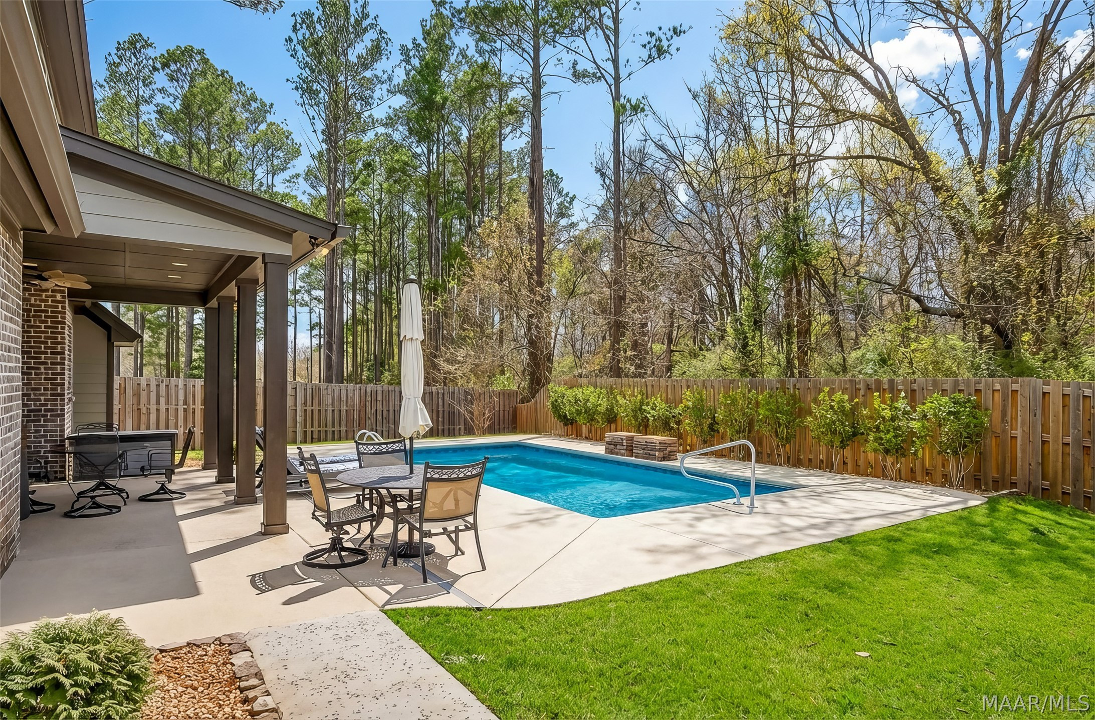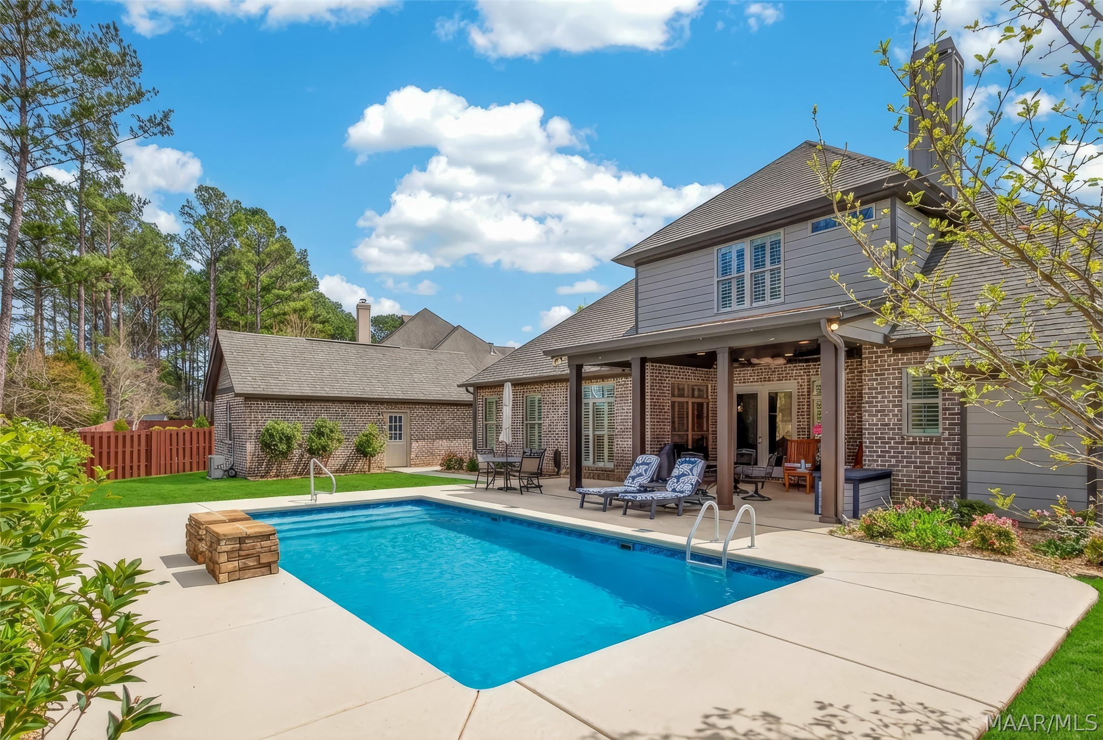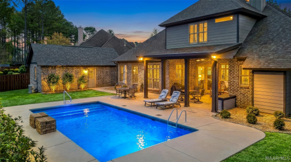 Outdoor living is equally refined with a large covered patio, mature shade trees, lighted landscaping, and a private backyard pool—ideal for entertaining and everyday enjoyment. In addition to the attached two-car garage, the detached garage is heated and cooled, with epoxy flooring in both.