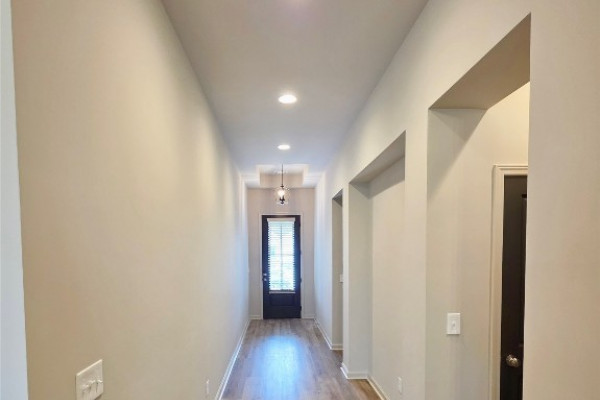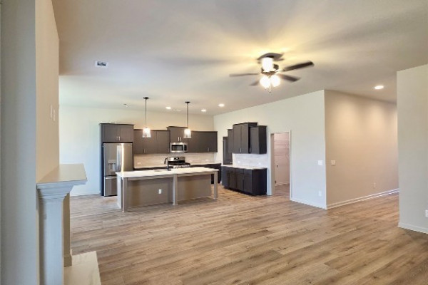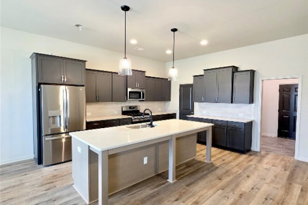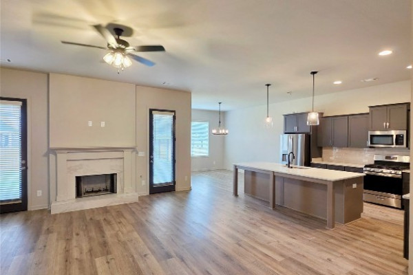 Welcome home to this stunning new build featuring 4 bedrooms and 2.5 bathrooms in the desirable Woodland Creek Neighborhood! This open-concept layout offers a bright and spacious feel with the kitchen flowing into the dining area, which overlooks the fenced backyard, perfect for entertaining or relaxing. Kitchen is equipped with an oversized island, quartz countertops, beautiful tiled backsplash, and modern stainless steel appliances. The spacious primary suite features peaceful backyard views, dual sinks, an oversized walk-in shower, and a large walk-in closet. Three additional bedrooms and a full bathroom are conveniently located down the hallway, with a half bath for guests near the main living area. The mudroom/laundry room sits just off the garage for extra convenience. Enjoy outdoor living year-round with a spacious covered patio and a fenced backyard. Washer and dryer included. Lawn maintenance included. No pets. Tenant responsible for one time tenant transfer fee.
