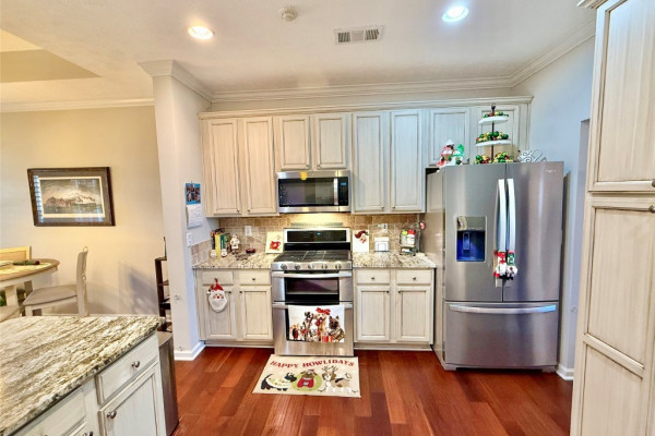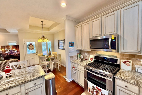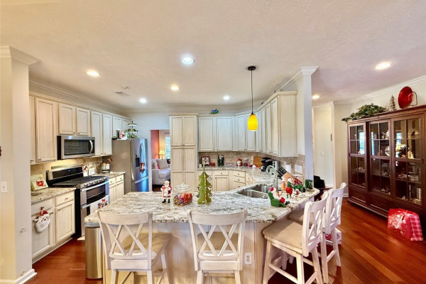 The gourmet custom kitchen is a true showpiece, featuring high-end custom cabinetry, premium appliances, new tile, and stunning granite countertops. Both the formal dining room and breakfast room are conveniently located near the kitchen, making this home ideal for entertaining.