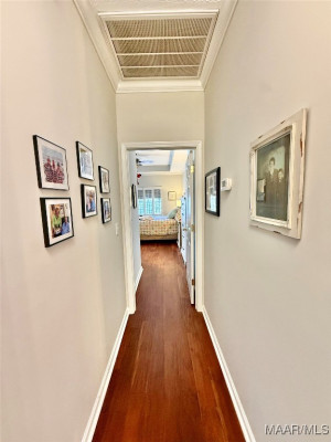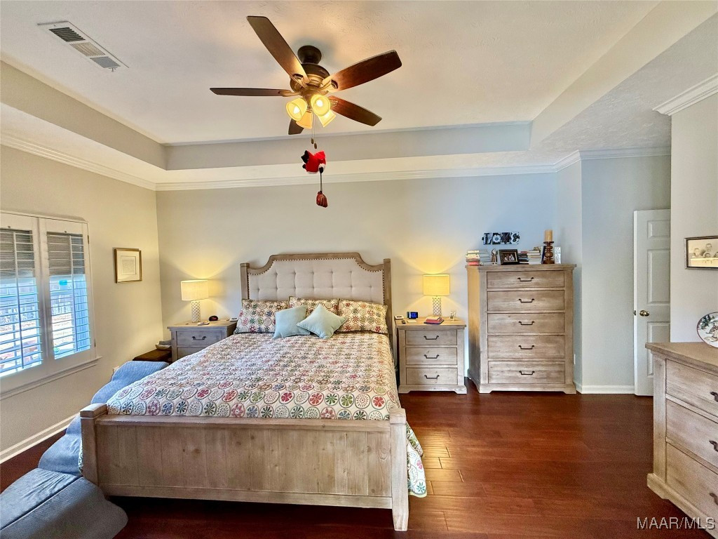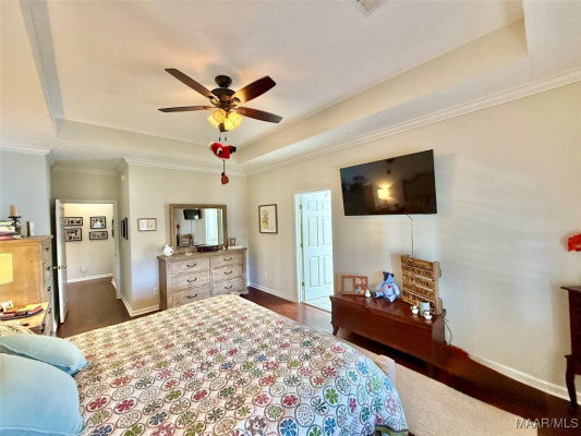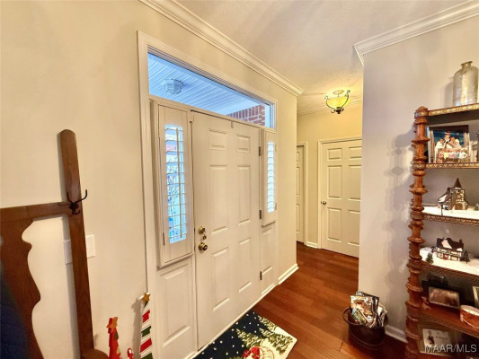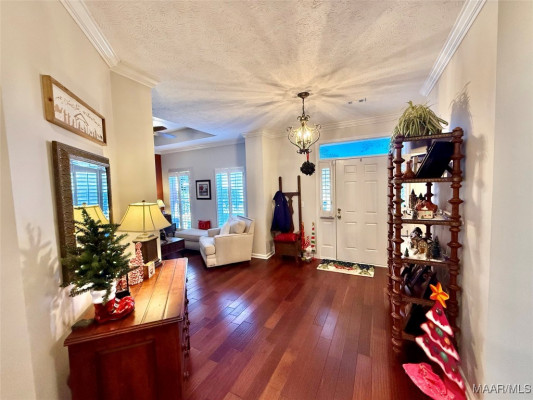 Rich wood flooring flows throughout the main living areas and primary suite. Spacious guest bedrooms offer generous storage, while the expansive primary suite provides a private, luxurious retreat. Plantation shutters add timeless elegance throughout the home.