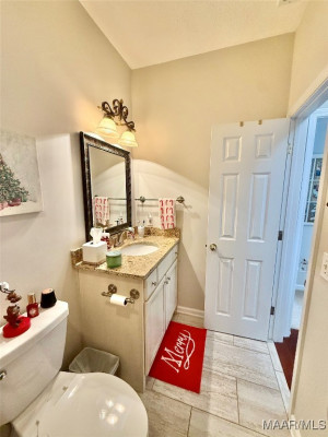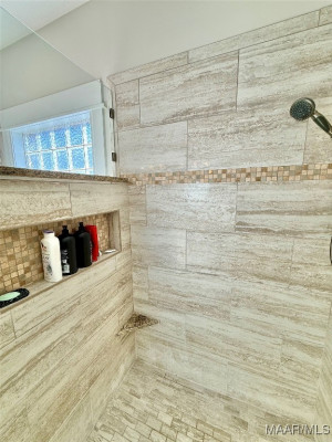 The spa-inspired primary bathroom has been beautifully renovated with custom cabinetry, a designer tiled shower, and elegant new flooring. The guest bathroom has also been thoughtfully updated with upscale finishes.