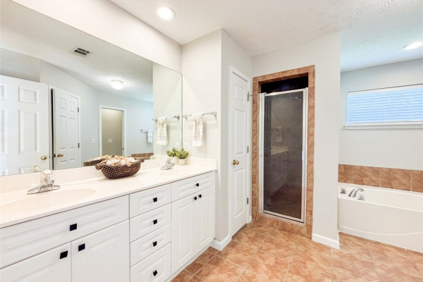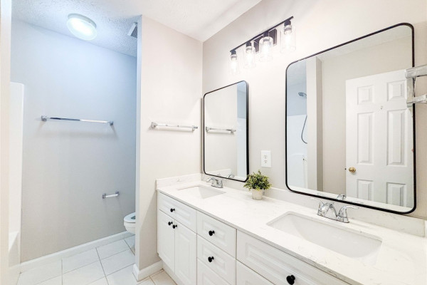 Retreat to the expansive main bedroom, an oasis complete with an en suite bathroom showcasing a luxurious garden tub and a separate shower. Three additional generously sized bedrooms offer versatile living spaces, ideal for a nursery, productive home office, or comfortable guest accommodations. These rooms share access to a newly renovated full bathroom and a convenient half bathroom.