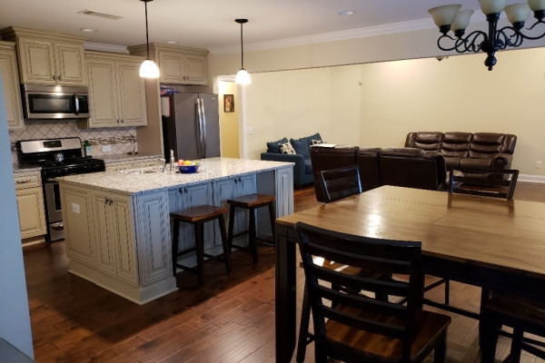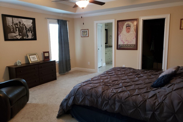 GREAT HOME IN THE RIDGE AT PRATT FARMS AVAILABLE JULY 7, 2026! This 4 bedroom 2 bath home is a one story open floor plan that begins with a refined foyer entry way, which opens into a roomy living area with vaulted, coffered ceiling. The kitchen opens to the family room with a large center island and adjoining dining room. The kitchen has built-in stainless steel appliances, granite counter tops and an expanded pantry. The separate master quarters provides a large bedroom and walk-in closet as well as luxurious bathroom complete with double granite vanity, garden tub and tiled shower with glass door.