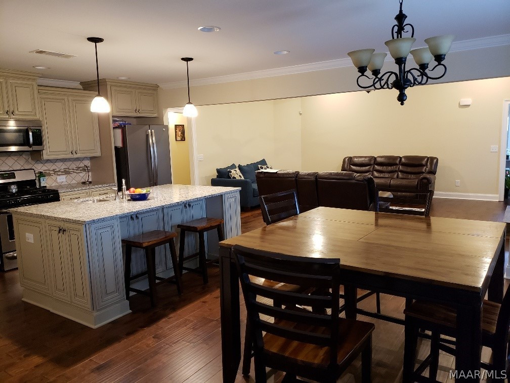 GREAT HOME IN THE RIDGE AT PRATT FARMS AVAILABLE JULY 7, 2026! This 4 bedroom 2 bath home is a one story open floor plan that begins with a refined foyer entry way, which opens into a roomy living area with vaulted, coffered ceiling. The kitchen opens to the family room with a large center island and adjoining dining room. The kitchen has built-in stainless steel appliances, granite counter tops and an expanded pantry. The separate master quarters provides a large bedroom and walk-in closet as well as luxurious bathroom complete with double granite vanity, garden tub and tiled shower with glass door.