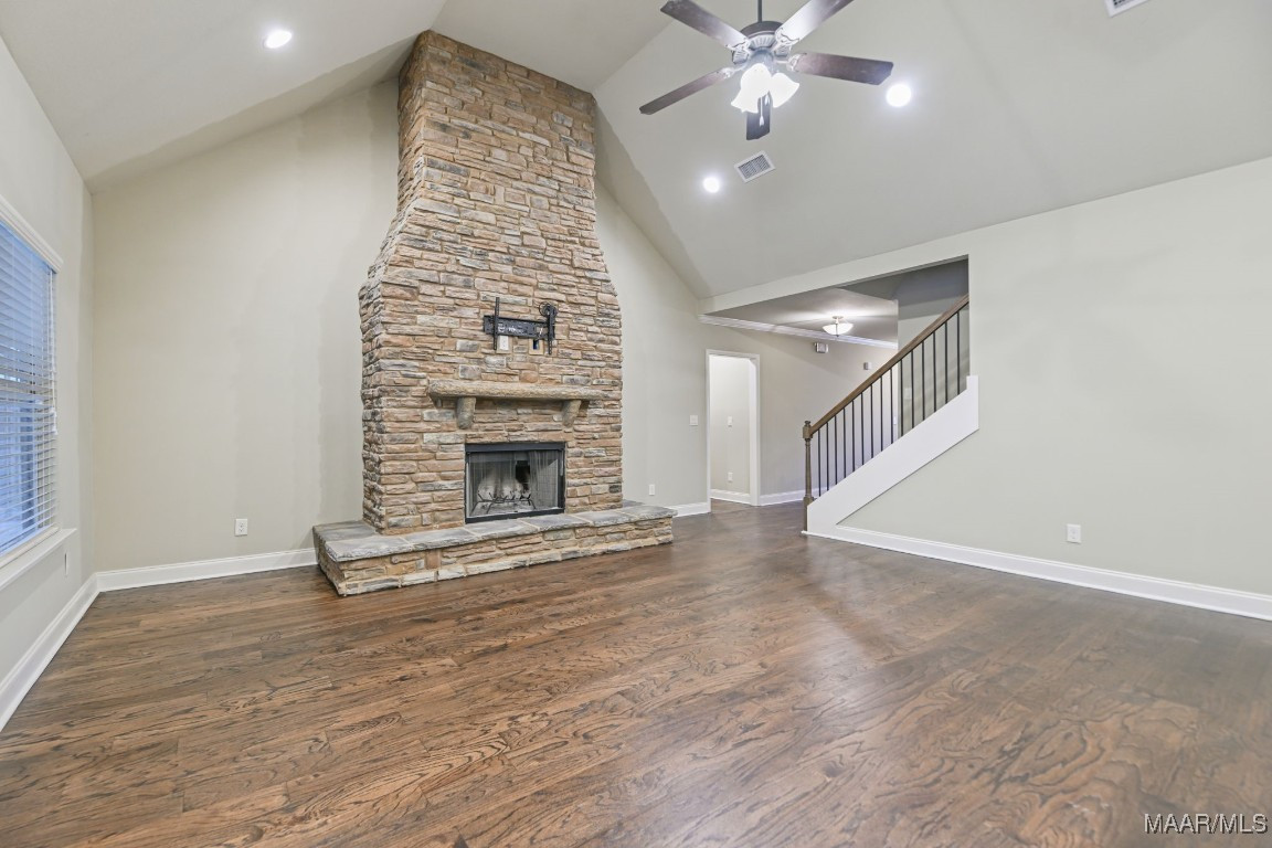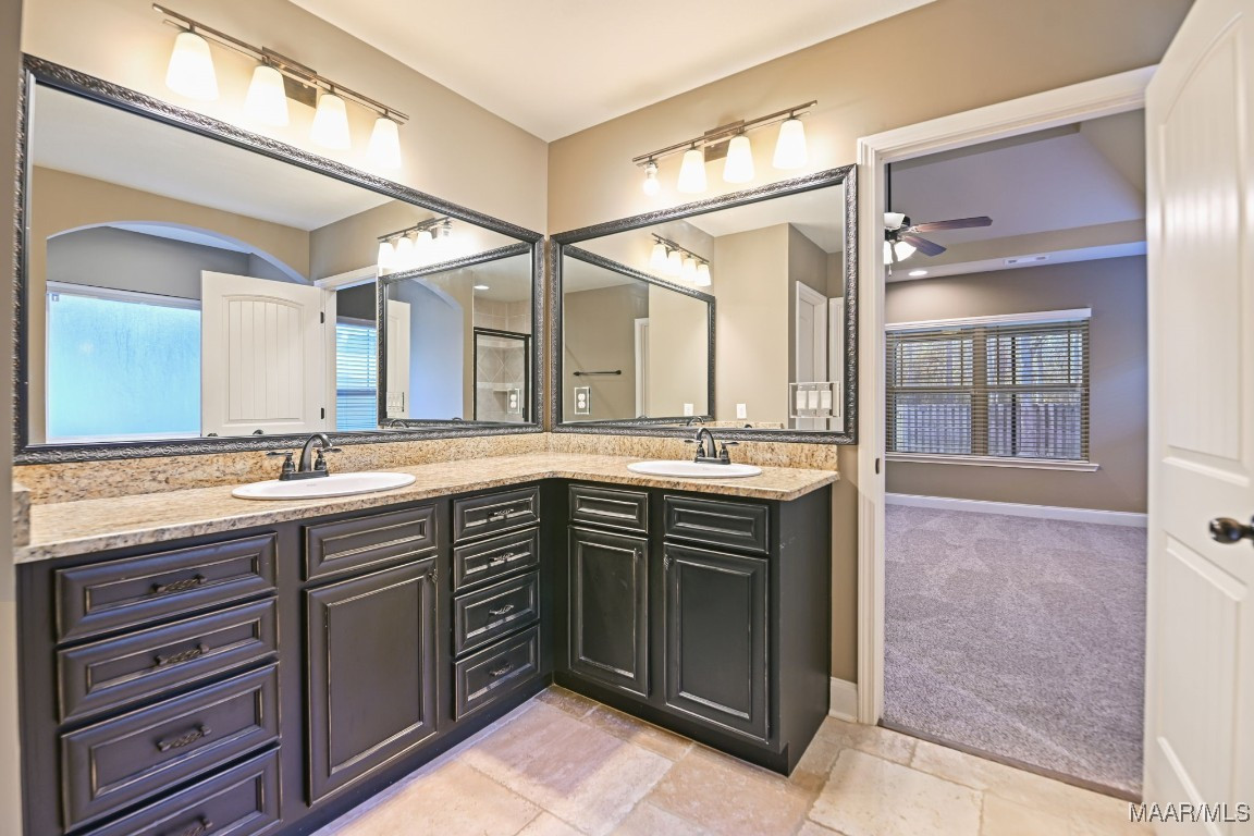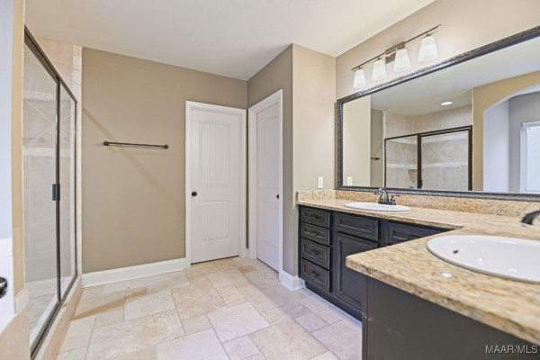 The open floor plan features a cozy stone fireplace, granite countertops in the kitchen and bathrooms, a large walk-in kitchen pantry, breakfast nook, separate dining area, and a spacious laundry room. The master room is a true retreat with a garden tub, separate shower, dual vanities, and an oversized walk-in closet.