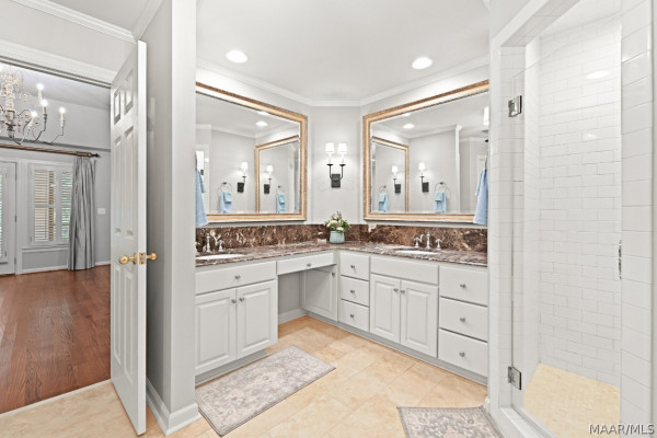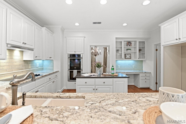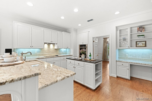 This exceptional 4-5 bed 4.5 bath home is situated on a large (almost an acre) lot in Wynlakes. The recent updates have a timeless quality with stylish fixtures, plantation shutters, and wood and tile floors throughout. This floor plan is excellent for entertaining with a formal living room and formal dining room that flank the entry. The great room has a gas fireplace centered between built-in bookshelves and double doors to the screened porch. The kitchen boasts an island, built-in desk, 2 pantries, granite countertops, and stainless appliances including an Electrolux dishwasher and double ovens, and a Kitchen Aid smooth surface cook top. In-laws or guests will appreciate the downstairs guest bedroom and private bathroom. Located upstairs, the primary bedroom has a gas fireplace, a beautifully updated bathroom, and a screened porch overlooking the extensively landscaped backyard. There are also two guest rooms, 2 full bathrooms, and a large bonus/bedroom with built-ins upstairs.