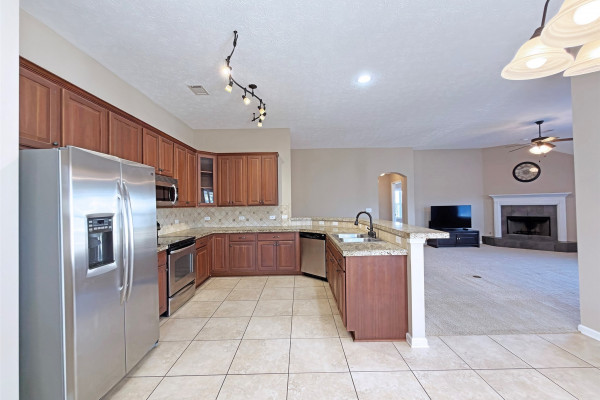 This Woodland Creek beauty boasts one of the more popular floor plans featuring 4 bedrooms, 2 baths, 2 car garage and a substantial kitchen not to mention a sizeable great room. This culdesac home offers curb appeal from first sight. The beautiful front door leads you into a formal foyer with beautiful tile work and arches flanking either side and art niches located in several areas. A spacious formal dining area to your right allows for an oversized table that could seat the entire crew. Through to the kitchen and great room you will be greeted with high ceilings and oversized rooms. That substantial kitchen, well it truly allows for several chefs in the kitchen at one time. Loads of cabinetry, bar seating for 6 or more and stainless appliances to round it out. A desk area and butlers pantry area are just a couple of added features you will find. The great room can accommodate oversized furniture and has a corner gas fireplace. The primary bedroom and ensuite is located in the back of the home for privacy and beautiful views of the backyard. The ensuite bath has a dual sink vanity, garden tub, walk in closet and is highlighted by the fully tiled separate shower with large bench seat. 3 guest bedrooms and a full guest bath are located up toward the front of the home. Outside you will find a large backyard with privacy fence and shade trees. Woodland Creek offers community amenities such as a large pool, clubhouse, fitness center, playground, bark park, walking trails and more! Located close to shopping, dining and entertainment as well as nearby access to the interstate
