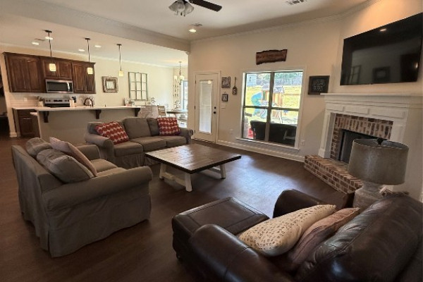 Welcome to this charming 4-bedroom, 2-bath home located in the desirable Plantation Pines subdivision. Step inside to find a warm and inviting living room featuring a gas fireplace, a comfortable den, and a well-designed kitchen perfect for family gatherings and entertaining. The master bedroom boasts a beautiful tray ceiling, adding a touch of elegance.