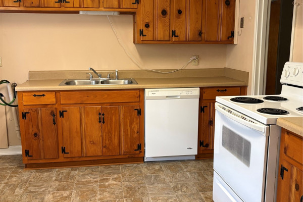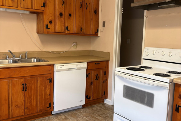 The living areas and bedrooms feature hardwood floors that add warmth and character throughout. The kitchen showcases beautiful pine cabinetry that brings a cozy, inviting feel to the space.