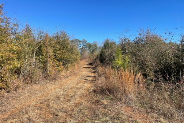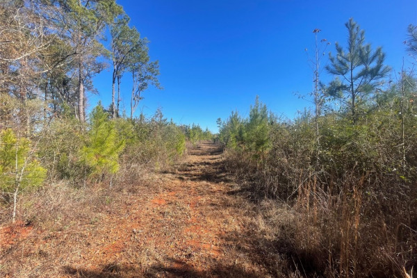This tract consists of young natural regen of pine and hardwood trees, that provide great bedding cover for whitetailed deer and other animals. It features a flat to gently rolling topography, an internal road system, food plot, and flowing stream-buffered by large hardwood trees of various species. It is situated in close proximity to the Talladega National Forest.